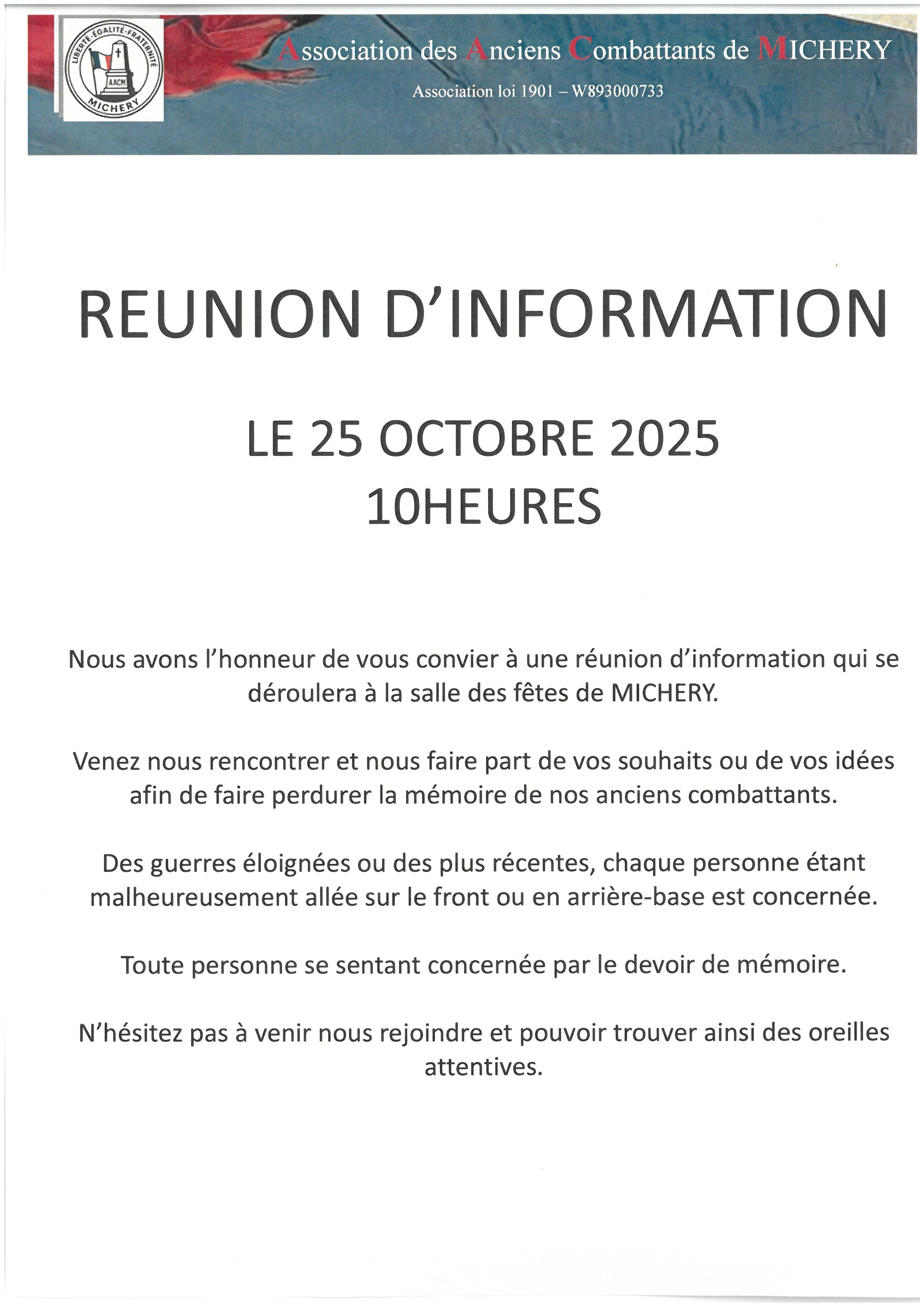 Ce fut une très belle cérémonie, marquée par la participation des enfants de l’école, des anciens combattants, de l’Harmonie de Pont, des pompiers et d’une population venue en nombre. Un grand merci à l'Association Culturelle de Michery, à Bleu Horizon pour la très belle exposition à la salle du conseil qui a rendu hommage aux femmes pendant la guerre, à la Marmite qui nous a régalés, aux enseignantes qui ont préparé les enfants, à Bernard pour ses photos et vidéos, aux employés communaux pour avoir embelli les abords du monument aux morts, à Alain pour son vol pendant la cérémonie.
