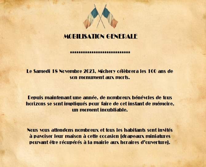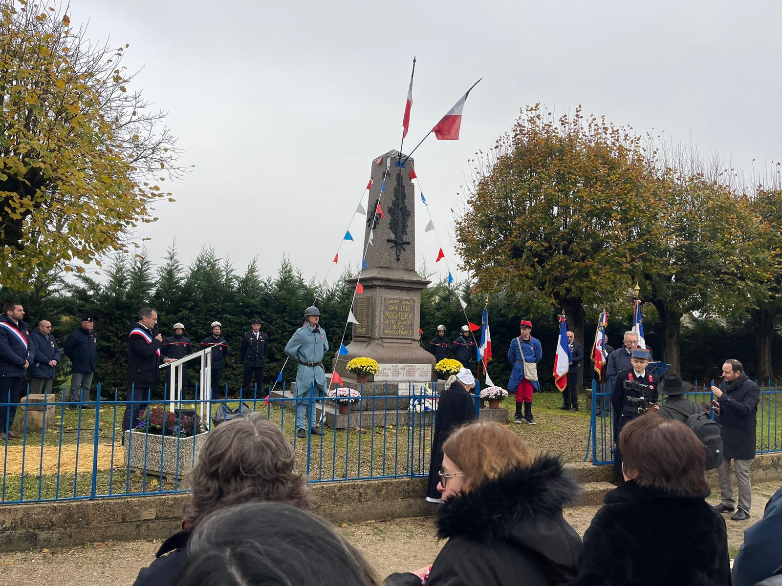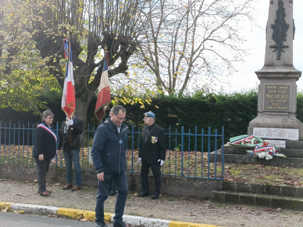 Ce fut une très belle cérémonie, marquée par la participation des enfants de l’école, des anciens combattants, de l’Harmonie de Pont, des pompiers et d’une population venue en nombre. Un grand merci à l'Association Culturelle de Michery, à Bleu Horizon pour la très belle exposition à la salle du conseil qui a rendu hommage aux femmes pendant la guerre, à la Marmite qui nous a régalés, aux enseignantes qui ont préparé les enfants, à Bernard pour ses photos et vidéos, aux employés communaux pour avoir embelli les abords du monument aux morts, à Alain pour son vol pendant la cérémonie.