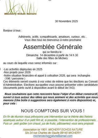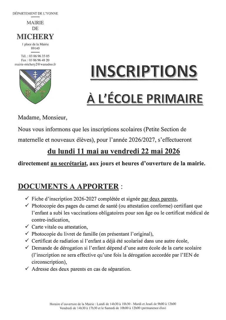 Pour les collègiens, intéressés par ce dispositif, envoyez-nous un message sur mairie-michery2@wanadoo.fr