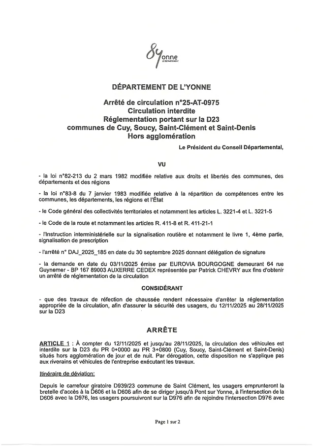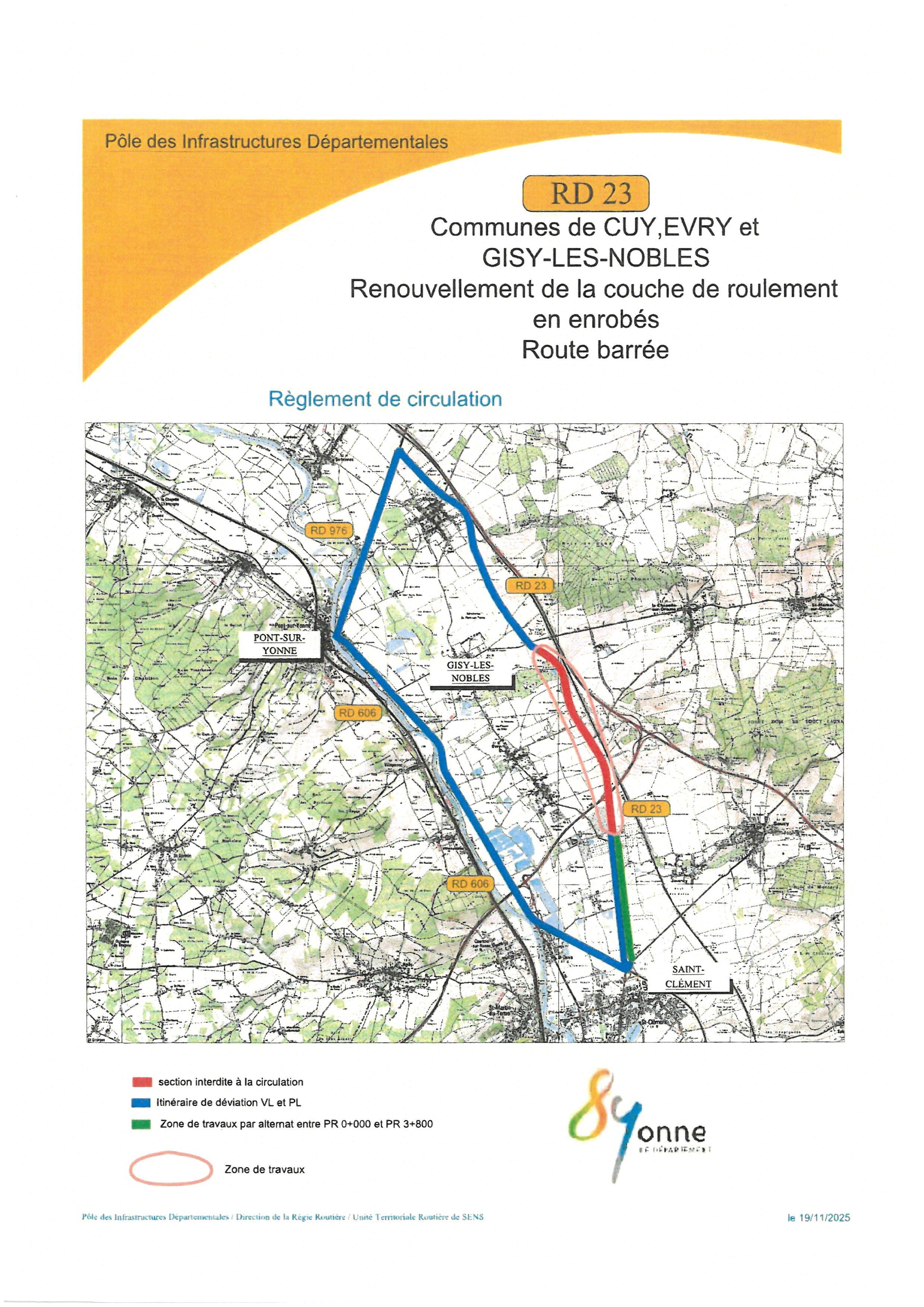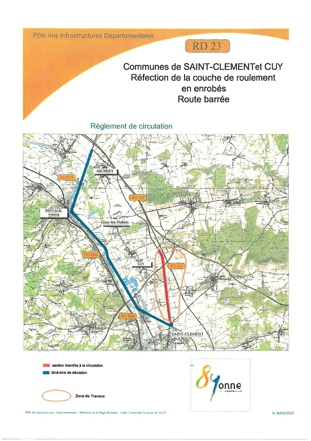 A compter du 25/11 et jusqu'au 12/12/2025, la circulation sera alternée sur la D23 sur deux tronçons. Voir carte.