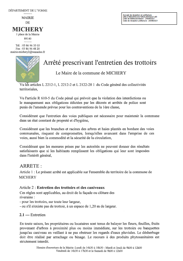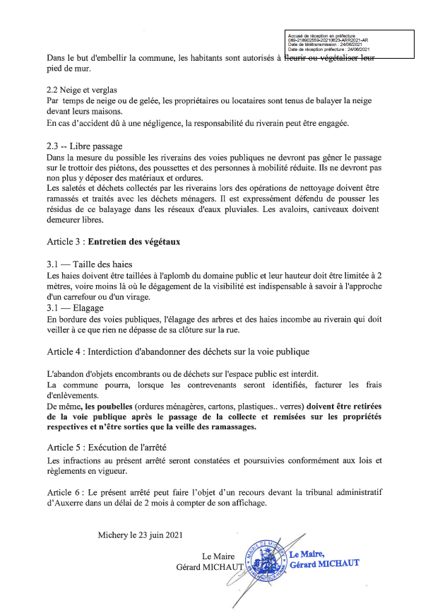 Une aide de 75 € sera donnée par la Commune de Michery sur présentation de la facture acquittée d'un professionnel.