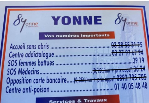 📢 Nous confirmons qu’il s’agit d’un FAUX ! Ce document n’émane en aucun cas du Département de l’Yonne et contient des coordonnées douteuses pouvant représenter un danger pour ceux qui les contacteraient.