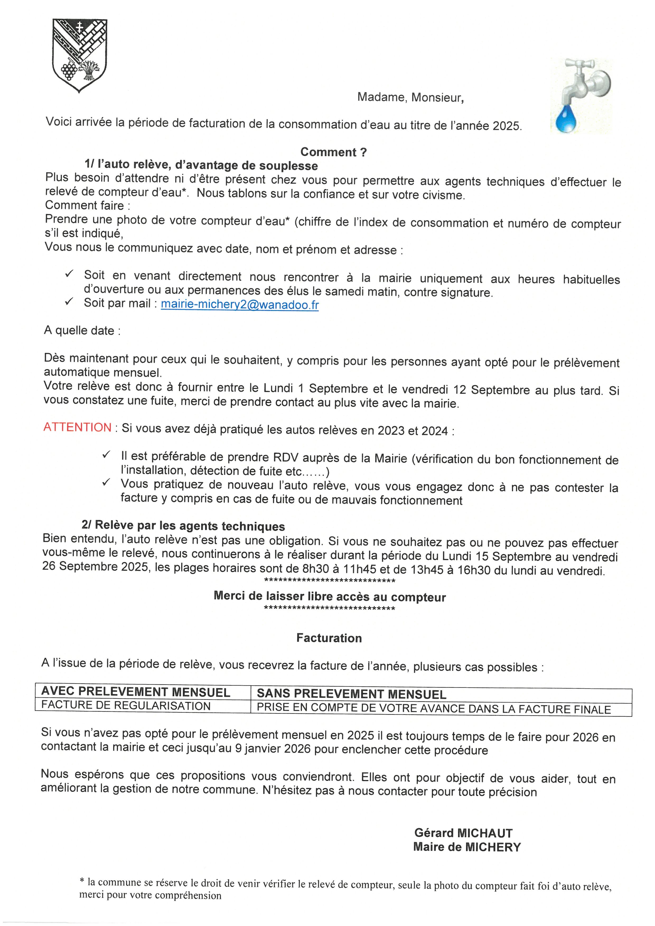 Nous vous rappelons que le règlement des factures d'eau est à envoyer à la trésorerie de Sens à l'adresse suivante: